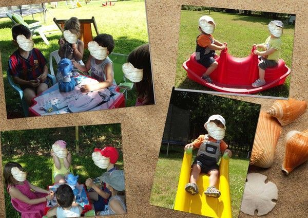 Nous profitons de ces belles journées d'été pour jouer à tous les jeux d' extérieurs de chez tata. Nous sommes super contents. Les petits, c'est tape-cul, toboggan... et pour les plus grands, c'est le jeu de la baleine qui arrose. Trop chouette!